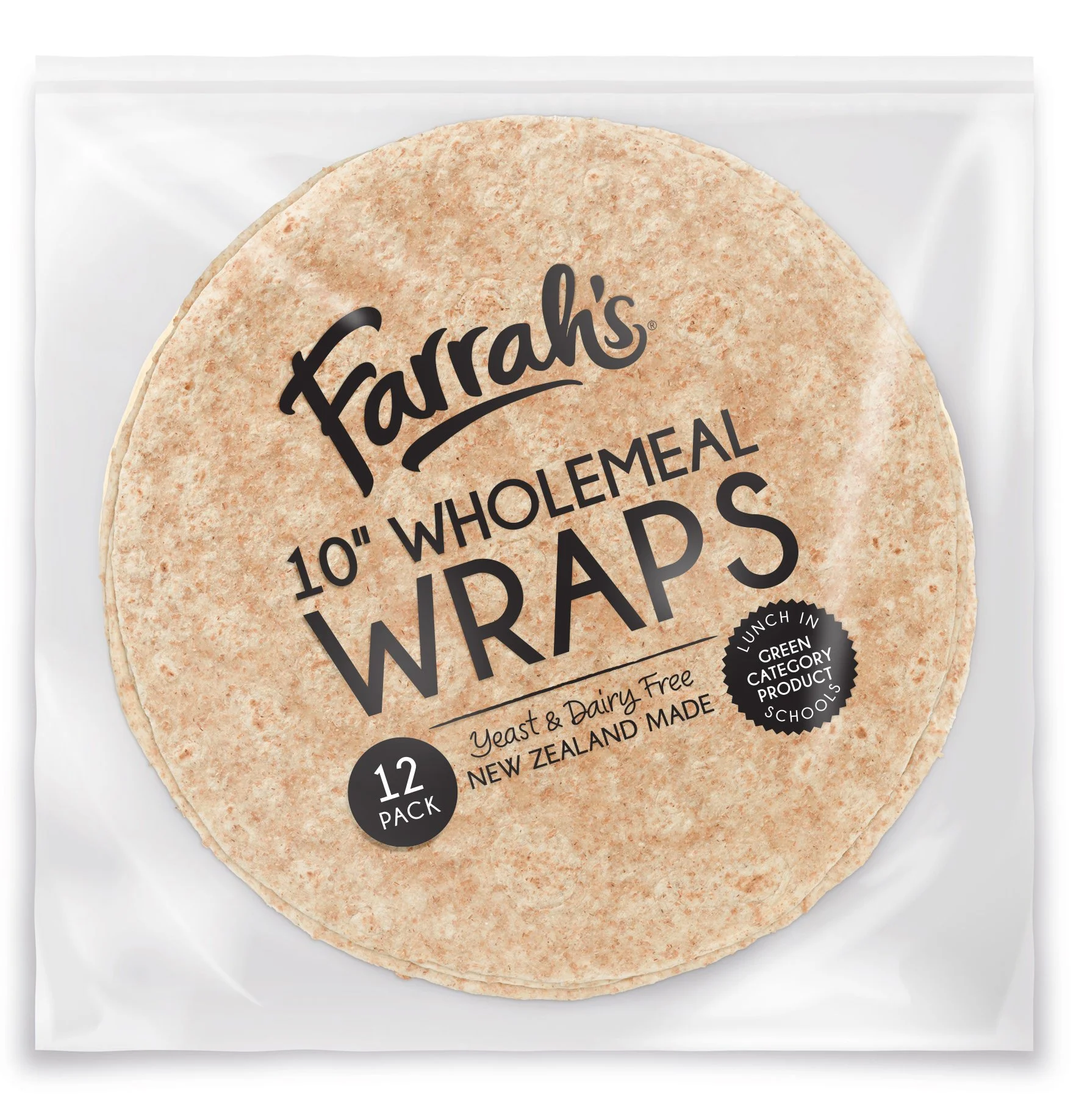 Farrah’s 10" Wholemeal Wraps are made using the finest plain and wholemeal wheat flour. They’re strong and pliable and can be used straight from the pack. An ambient product, with a 120-day shelf-life (unopened) from the date of manufacture, they’re best stored in your dry store, even after opening. Extremely versatile - filled, folded, wrapped, stacked or baked in a wide range of wrap recipes.